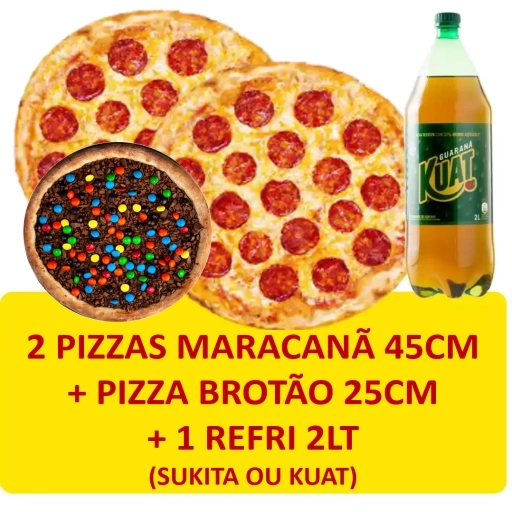 1 PIZZA MARACANÃ 45CM (2 sabores) + 1 BROTÃO + REFRI 2LT
