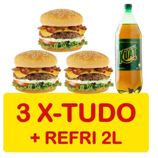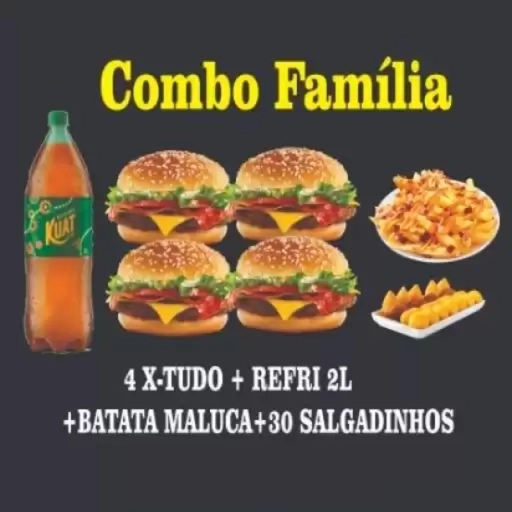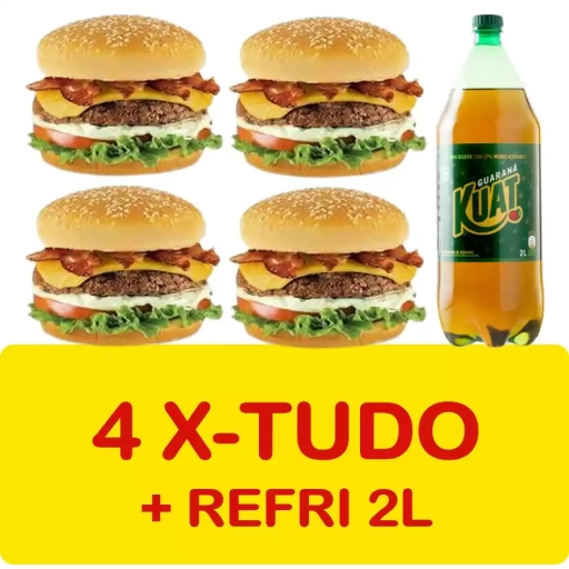 4 X-TUDO + REFRI 2L + BATATA MALUCA + 30 SALGADINHOS