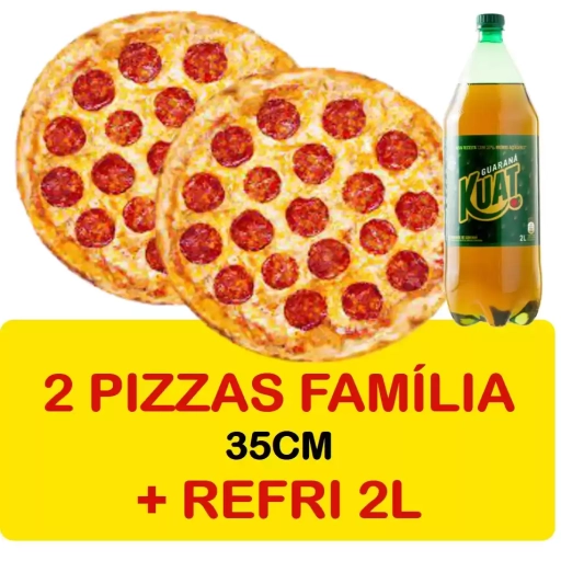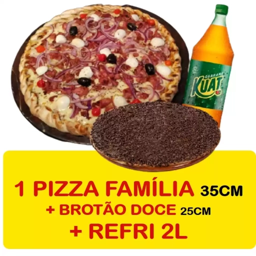 1 PIZZA FAMILIA 35CM (2 sabores) + 1 BROTÃO + REFRI 2LT