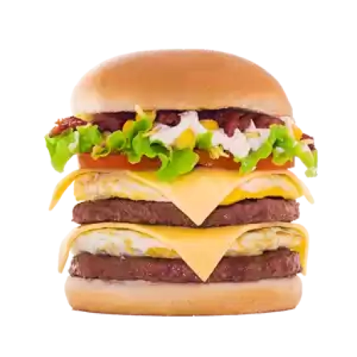 Pão, 2 carnes, 2 queijos, 2 ovos, molho verde, salada, maionese, ketchup, molho billy jack