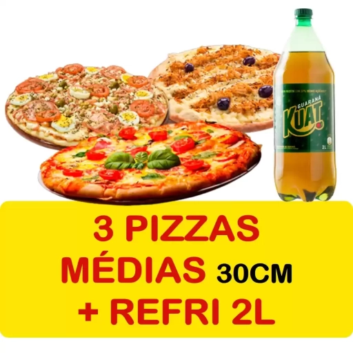 3 PIZZAS MEDIA 30CM + REFRI 2LT